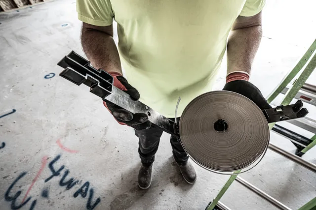 Ein integrierter Spannungshalter sorgt für zusätzliche Kontrolle. Der Gurt kann straff geführt werden um saubere Schnitte zu ermöglichen oder frei abrollen wenn schnelles Arbeiten gefragt ist. Diese durchdachte Funktion macht den Strap Holder zu einem praktischen und bewährten Zubehör für den täglichen Einsatz.